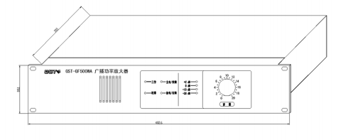 以 GST-GF500WA 型廣播功率放大器為例進行說明,其外形及結(jié)構(gòu)示意圖如圖 9-3。