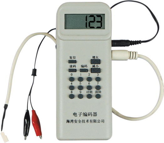 與探測器、模塊的總線端子相連,操作 ,開機(jī)后按下讀碼鍵,液晶屏上將顯示地址編碼。輸入探測器或模塊的地址編碼(1-242),按下“編碼”鍵進(jìn)行編碼。若編碼成功,屏幕顯示下一個(gè)地址碼,此時(shí),直接按下“編碼”鍵,可直接編入下一個(gè)地址碼。