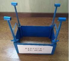 1)該裝置由四塊鋼板拼接而成,每塊鋼板連接位置處焊接鍍鋅鋼管門軸。