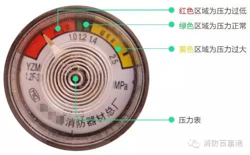 2、儲(chǔ)壓式滅火器壓力符合要求,壓力表指針在綠區(qū);