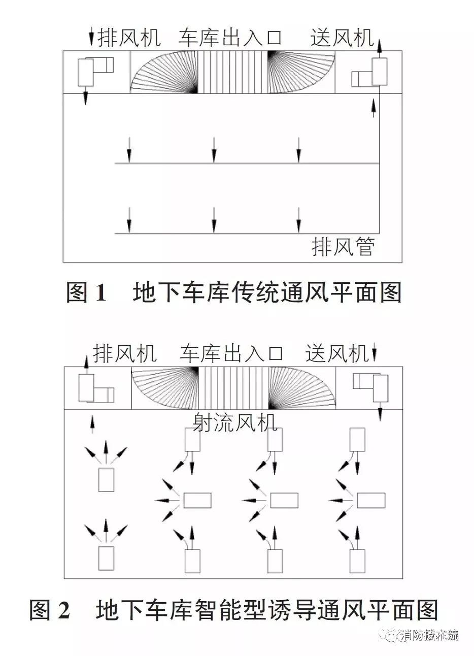 其排除的污染物氣體的濃度比采用傳統(tǒng)的通風(fēng)系統(tǒng)高。誘導(dǎo)通風(fēng)系統(tǒng)利用高速?lài)娍谒惋L(fēng),帶動(dòng)周?chē)諝?,一方面可以減小室內(nèi)一氧化碳等有害氣體的濃度,另外一方面使得室內(nèi)空氣沿著預(yù)先設(shè)計(jì)好的路線(xiàn)行進(jìn),從而可以使車(chē)庫(kù)內(nèi)的氣體能充分替換。