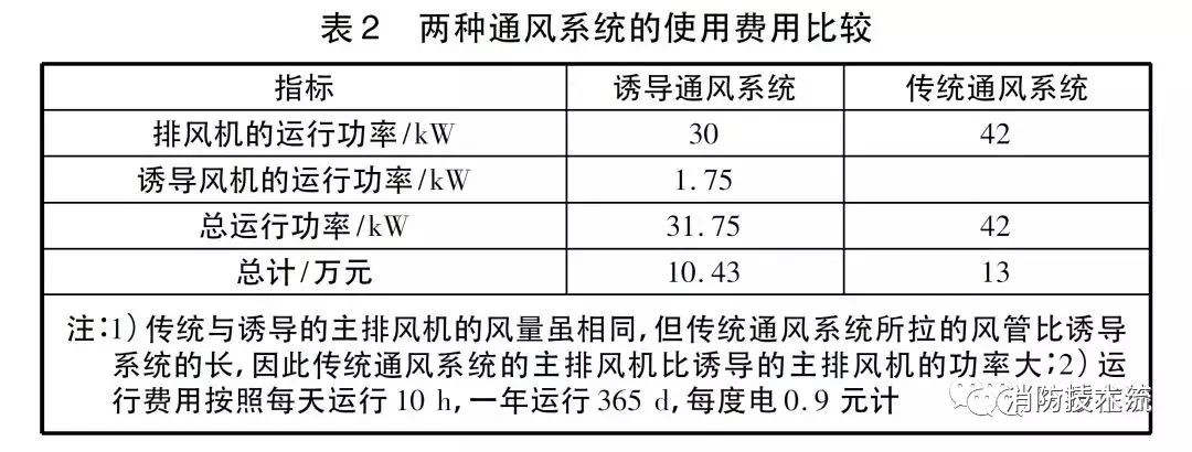 由于正常情況下只有通風(fēng)系統(tǒng)使用,所以日常運(yùn)行費(fèi)用分析只考慮通風(fēng)的費(fèi)用,兩種通風(fēng)系統(tǒng)運(yùn)行費(fèi)用比較見(jiàn)表2。