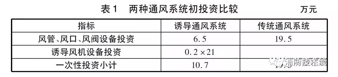 該車(chē)庫(kù)兩種通風(fēng)系統(tǒng)一次性投資情況見(jiàn)表1。