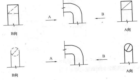 單線管道轉(zhuǎn)向的畫(huà)法: