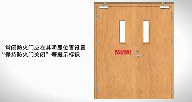3、常閉防火門應(yīng)在其明顯位置設(shè)置“保持防火門關(guān)閉”等提示標(biāo)識