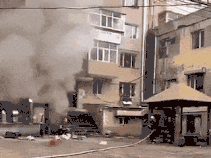 在動(dòng)圖示例中,即使操控者為專(zhuān)業(yè)人員,同樣被水槍水帶作用力沖倒,如在室內(nèi)火場(chǎng)出現(xiàn)類(lèi)似情況,將非常危險(xiǎn)。