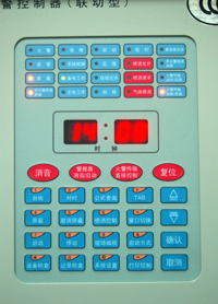 警報器啟動燈:紅色,有警報器處于啟動狀態(tài)時,此燈點亮,當停動警報器或警報器消音后,此燈熄滅。