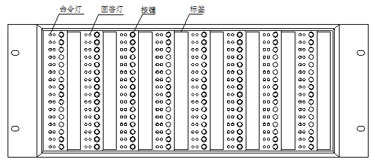 GST-LD-SD128智能手動消防啟動盤的外觀示意圖如圖2-11。每塊手動盤的每一單元均有一個按鍵、兩只指示燈和一個標簽。其中,按鍵為啟/??刂奇I,如按下某一單元的控制鍵,則該單元的命令燈亮(紅色),并有控制命令發(fā)出,如被控設備響應,則回答燈亮(紅色)。用戶可將各按鍵所對應的設備名稱書寫在設備標簽上面,然后與膜片一同固定在手動盤上。