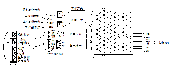 注意:當DC-DC變換模塊的開關關閉時,總線控制24V并未關斷,如需插拔主機箱內(nèi)的線路板,請務必先關閉主、備電電源。