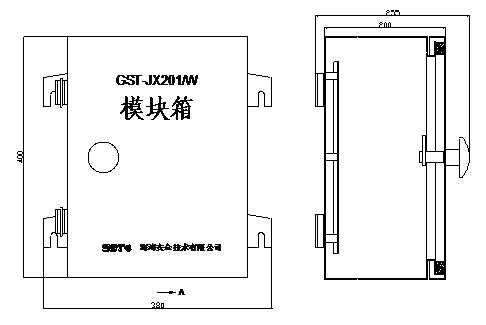 GST-JX201/W模塊箱外形示意圖如圖2- 56所示。GST-JX202/W~GST-JX205/W模塊箱除尺寸外,其外形結(jié)構(gòu)與GST-JX301模塊箱相同。