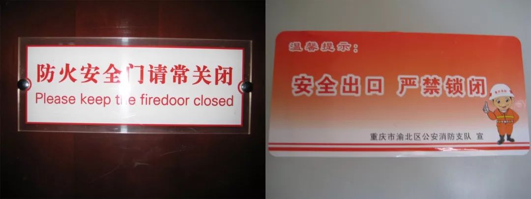 設(shè)置要求:在防火門中上部應(yīng)設(shè)置防火門保持常閉標(biāo)牌,以及禁止占用等警示標(biāo)語(yǔ)。