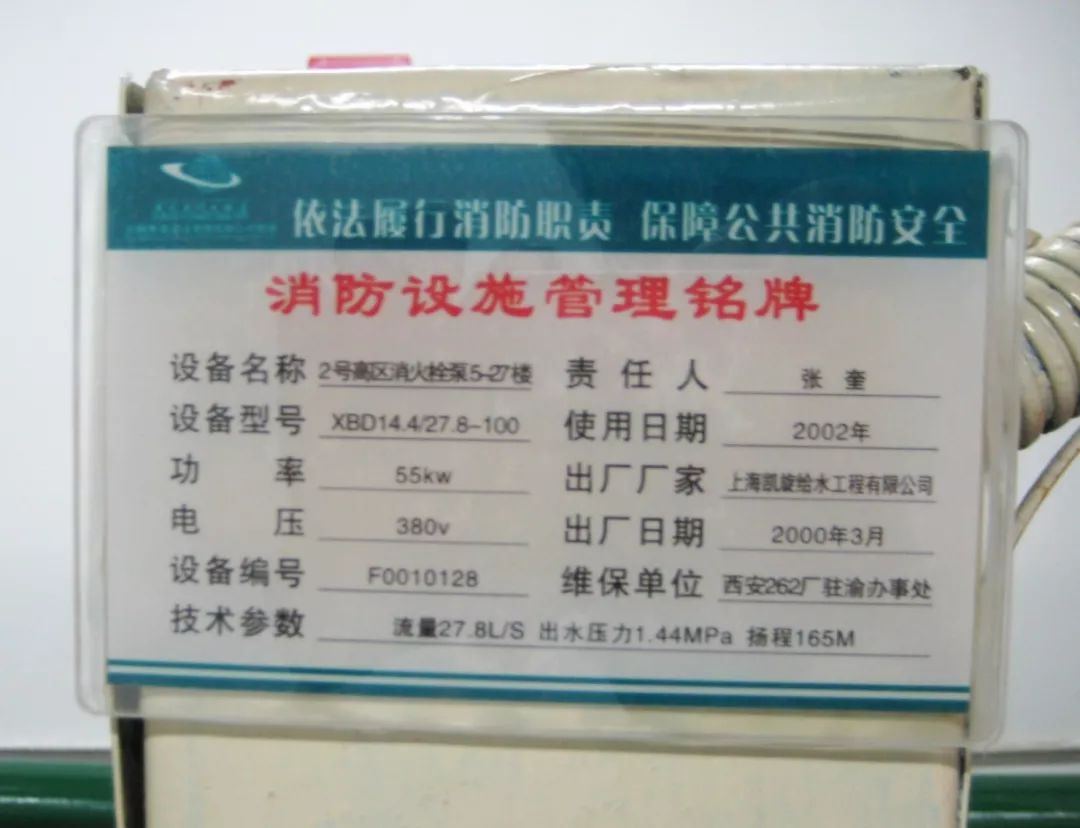 設(shè)置要求:主要消防設(shè)施應(yīng)設(shè)置管理銘牌標(biāo)牌。
