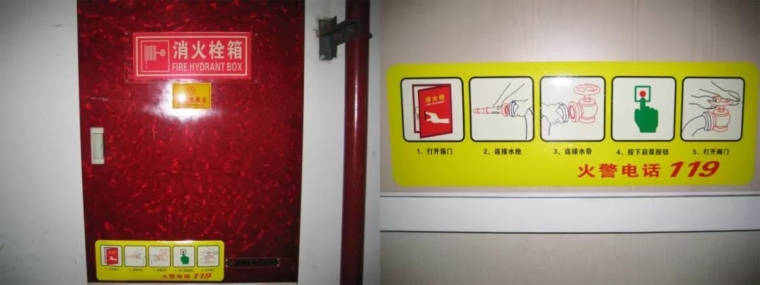 設(shè)置要求:在消火栓箱門中上部應(yīng)設(shè)置自發(fā)光式“消火栓箱”標(biāo)牌,在中下部張貼操作方法圖例,圖例大小420×140mm。