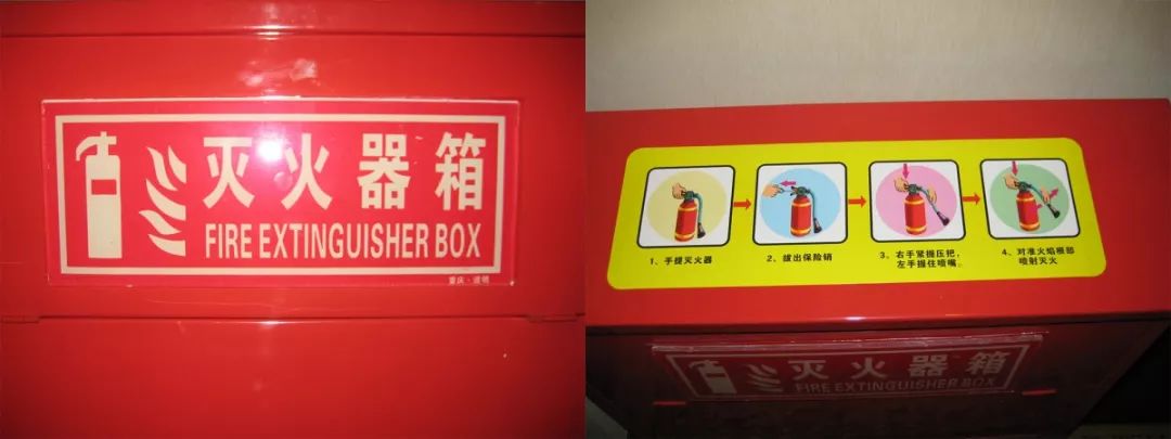 設(shè)置要求:在滅火器箱體正面中上部應(yīng)設(shè)置自發(fā)光式“滅火器箱”標(biāo)牌,在箱體上方張貼操作方法圖例,圖例大小420×140mm。