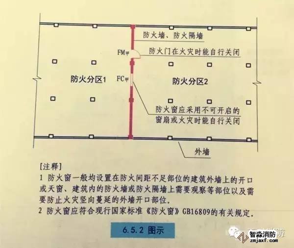 6.5.2設(shè)置在防火墻、防火隔墻上的防火窗,應(yīng)采用不可開(kāi)啟的窗扇或具有火災(zāi)時(shí)能自行關(guān)閉的功能。