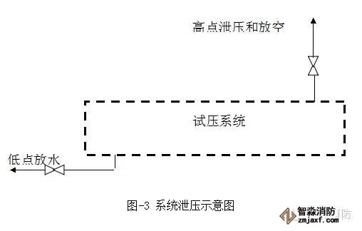 6.5.2管道系統(tǒng)試壓合格后進行泄壓排水時,必須先開啟管道系統(tǒng)高點的復(fù)位放空閥,在系統(tǒng)無壓力后,仍開高點放空閥,然后打開系統(tǒng)最低點的排水閥進行系統(tǒng)排水(見圖-3),將系統(tǒng)水排到指定地點。