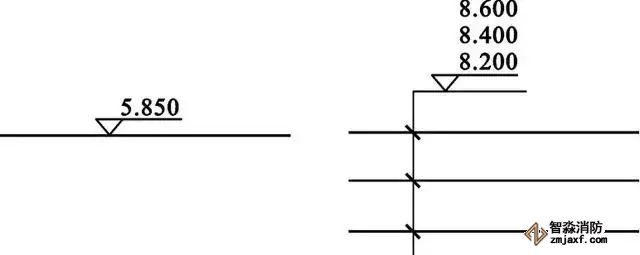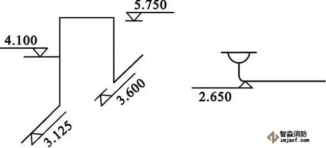 (3) 系統(tǒng)圖上對(duì)各樓層標(biāo)高都有注明,識(shí)讀時(shí)可據(jù)此分清管路是屬于哪一層的。
