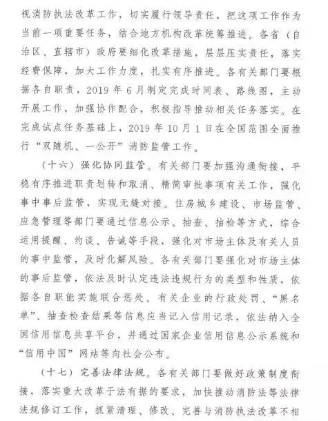《意見》還從加強組織領導、強化協(xié)同監(jiān)管、完善法律法規(guī)、抓好督促落實4個方面提出了深化消防執(zhí)法改革的保障措施。