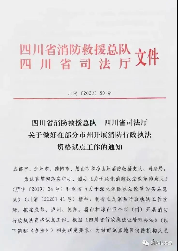 為確保消防員參與監(jiān)督執(zhí)法試點工作順利有序開展,四川消防救援總隊與四川省司法廳聯(lián)合下發(fā)《關(guān)于做好在部分市州開展消防行政執(zhí)法資格試點工作的通知》(以下簡稱《通知》)。