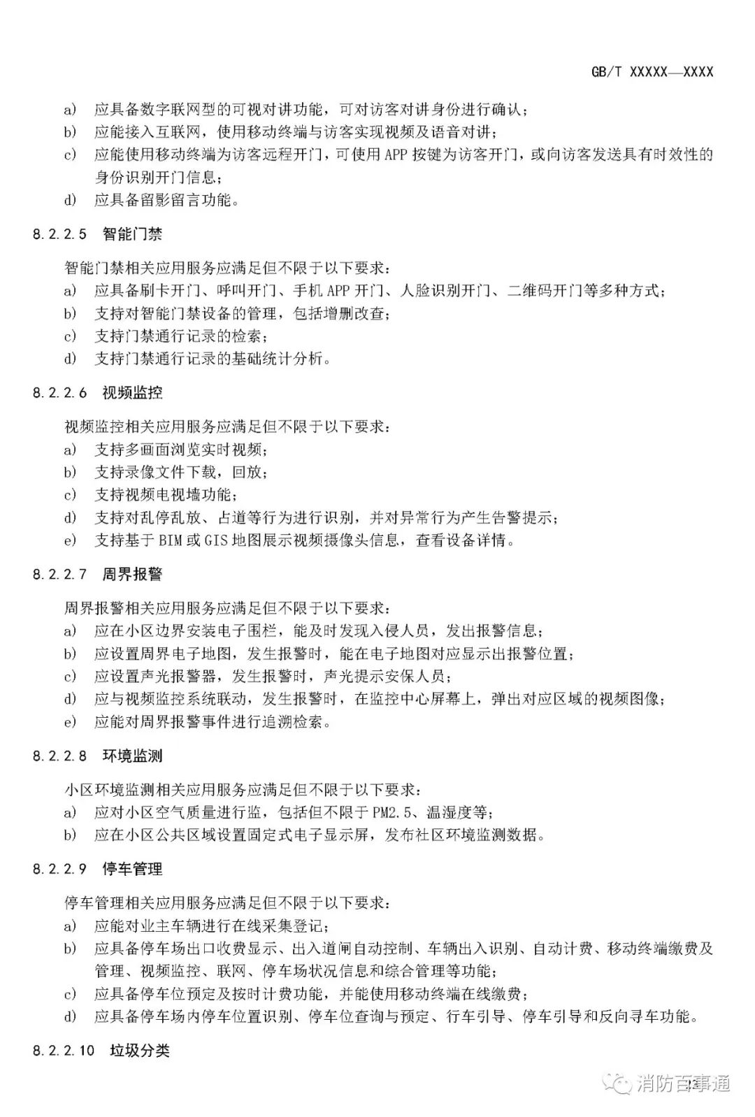 征求意見(jiàn)稿中對(duì)智能基礎(chǔ)設(shè)施的智能安防監(jiān)控設(shè)施、智能消防監(jiān)控設(shè)施、公用設(shè)施智能監(jiān)測(cè)設(shè)施、公共環(huán)境智能監(jiān)測(cè)設(shè)施、 智能家居設(shè)施等作出了相關(guān)規(guī)定。