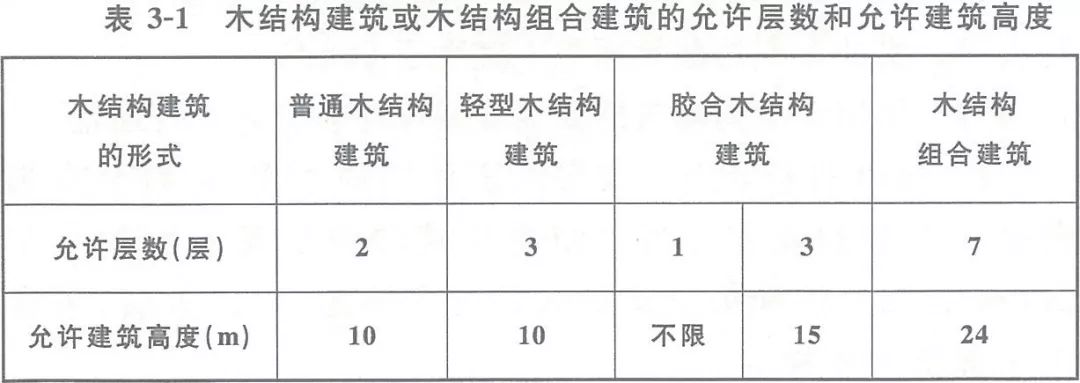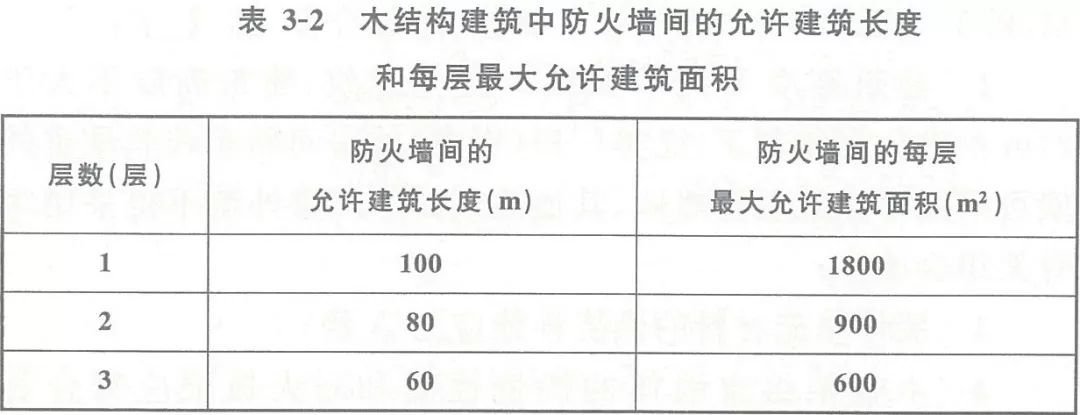 3、甲、乙、丙類(lèi)廠房(庫(kù)房)不應(yīng)采用木結(jié)構(gòu)建筑或木結(jié)構(gòu)組合建筑。丁、戊類(lèi)廠房(庫(kù)房)和民用建筑,當(dāng)采用木結(jié)構(gòu)建筑或木結(jié)構(gòu)組合建筑時(shí),其允許層數(shù)和允許建筑高度應(yīng)符合下表3-1的規(guī)定,木結(jié)構(gòu)建筑中防火墻間的允許建筑長(zhǎng)度和每層最大允許建筑面積應(yīng)符合下表3-2的規(guī)定。