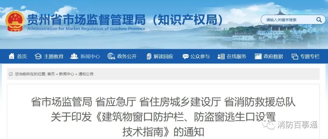 為貫徹落實《省安全生產(chǎn)委員會 省消防安全委員會關(guān)于印發(fā)〈貴州省貫徹落實國務(wù)院安委辦消防安全工作督導(dǎo)反饋意見整改方案〉的通知》(黔安〔2020〕10號)的部署和要求,規(guī)范建筑物窗口防護(hù)欄、防盜窗逃生口設(shè)置技術(shù)要求,我們組織編制了《建筑物窗口防護(hù)欄、防盜窗逃生口設(shè)置技術(shù)指南》。現(xiàn)將該技術(shù)指南印發(fā)給你們,請認(rèn)真貫徹執(zhí)行。