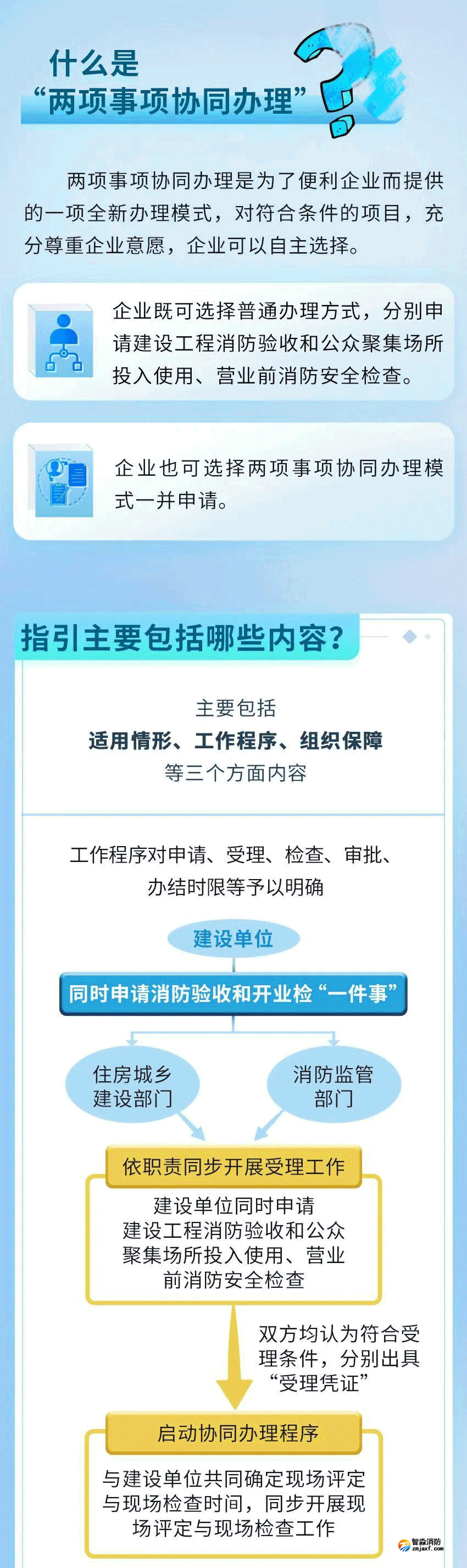 一圖讀懂《北京市建設(shè)工程消防驗收和公眾聚集場所投入使用、營業(yè)前消防安全檢查協(xié)同辦理工作指引(試行)》