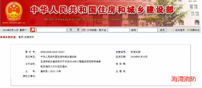 近日,住房和城鄉(xiāng)建設(shè)部發(fā)布了關(guān)于印發(fā)《2019年工程建設(shè)規(guī)范和標(biāo)準(zhǔn)編制及相關(guān)工作計劃的通知》,其中提到了2019年跟消防相關(guān)的部分規(guī)范的制定與修訂,我們一起來看一下吧!