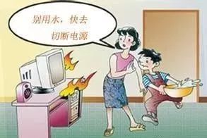 電器著火時,不能用水來滅火,以免因水流導(dǎo)電發(fā)生觸電事故。