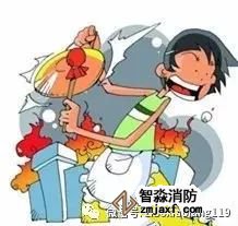 油鍋著火時(shí),蓋上鍋蓋滅火,不能用水撲救。