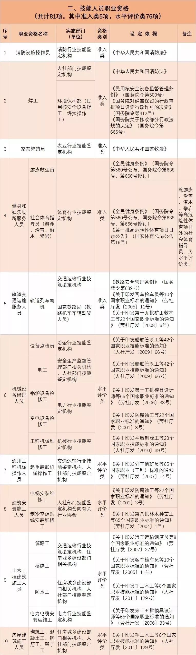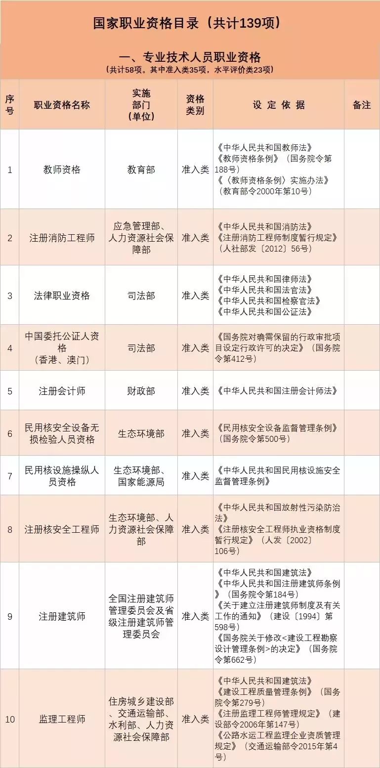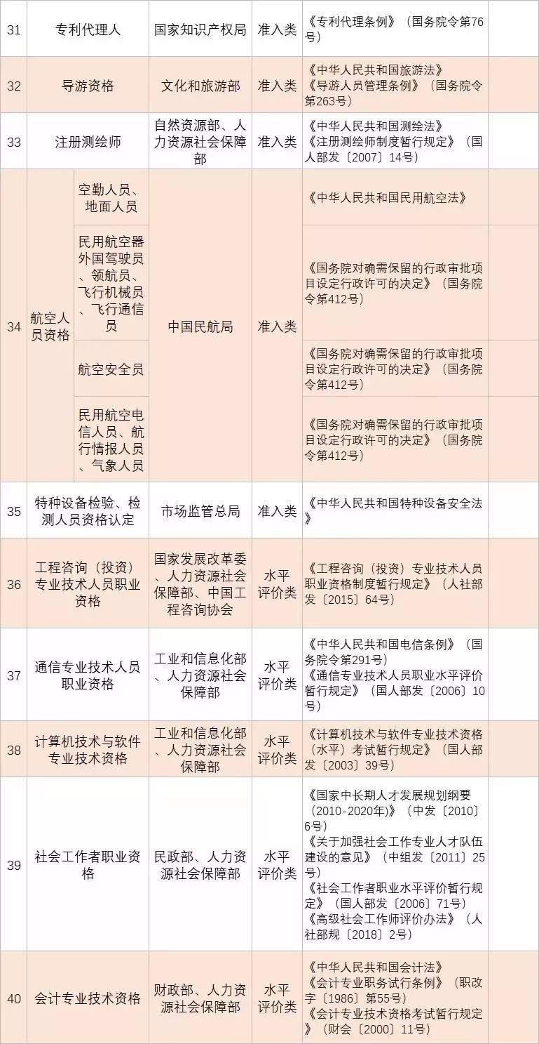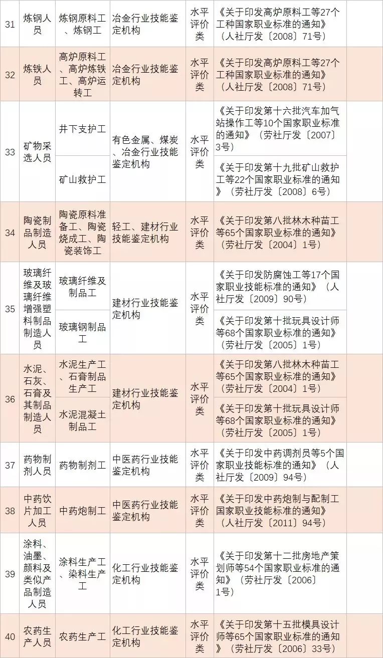 • 從2020年1月起,與公共安全、人身健康等密切相關(guān)的消防員、安檢員等7個工種依法調(diào)整為準(zhǔn)入類職業(yè)資格外,用一年時間分步有序?qū)?/span>其他水平評價類技能人員職業(yè)資格全部退出家職業(yè)資格目錄,不再由政府或其授權(quán)的單位認(rèn)定發(fā)證;