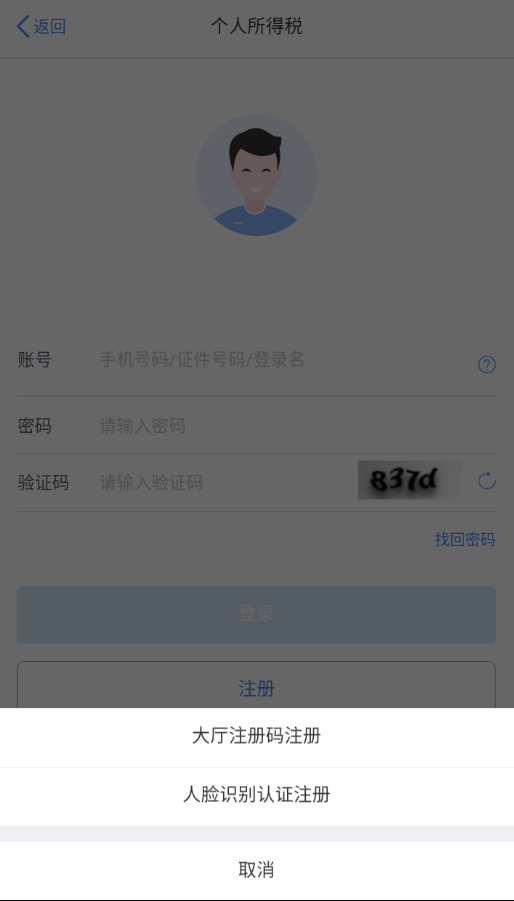1.打開個人所得稅APP,點擊【注冊】;