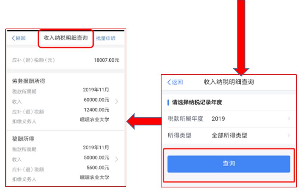 可以查詢收入和納稅明細了,