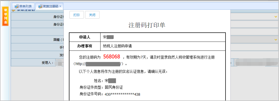 納稅人攜帶本人有效身份證件到辦稅服務(wù)廳獲取注冊碼,注冊碼有效期7天(注冊碼由6位的數(shù)字、字母隨機組成)。