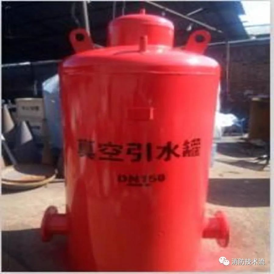 一些老舊建筑的改造,受面積或位置原因?qū)е孪浪貌荒軐崿F(xiàn)自灌式吸水,比如消防水泵只能安裝在消防水池的上蓋,此時水泵的吸水管只能向下伸入水池的水位中,造成吸水管一段管道無水,這種情況消防水泵在啟動時不能吸上水,而這樣的例子并不少見,以下介紹的真空罐(也稱負(fù)壓罐)是解決這個問題的一種方式。