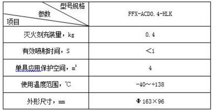 發(fā)動機艙用超細(xì)干粉自動滅火裝置主要技術(shù)參數(shù)