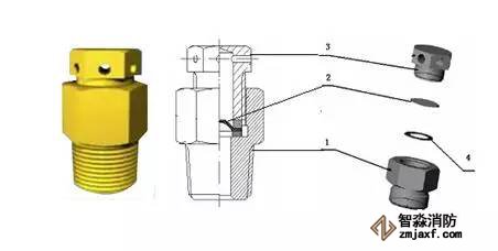 安全泄放裝置通常裝于瓶組和集流管上,以防止瓶組和滅火劑管道非正常受壓時損壞。安全泄放裝置可分為滅火劑瓶組安全泄放裝置、驅(qū)動氣體瓶組安全泄放裝置和集流管安全泄放裝置。安全泄壓閥起著保證瓶組和管網(wǎng)系統(tǒng)的安全,當(dāng)壓力超過規(guī)定值時自動開啟泄壓。