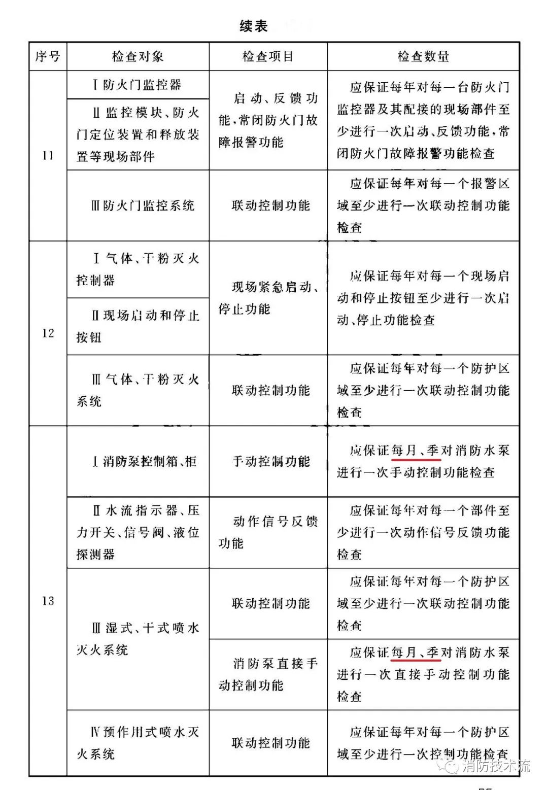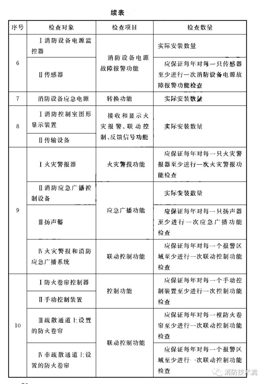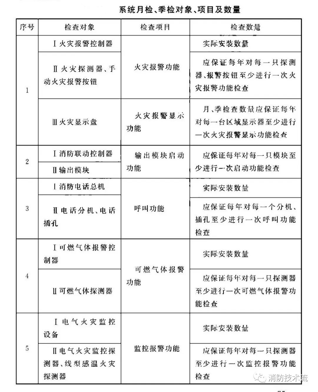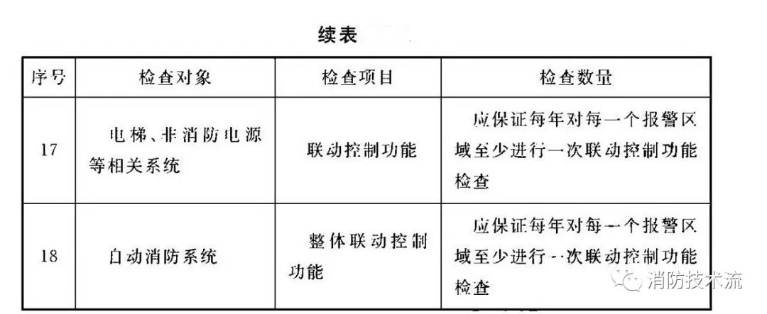 根據(jù)《 火災(zāi)自動報警系統(tǒng)施工及驗收標(biāo)準(zhǔn)》要求,每年應(yīng)按表中規(guī)定的檢查項目、數(shù)量對系統(tǒng)設(shè)備的功能、各分系統(tǒng)的聯(lián)動控制功能進(jìn)行檢查。