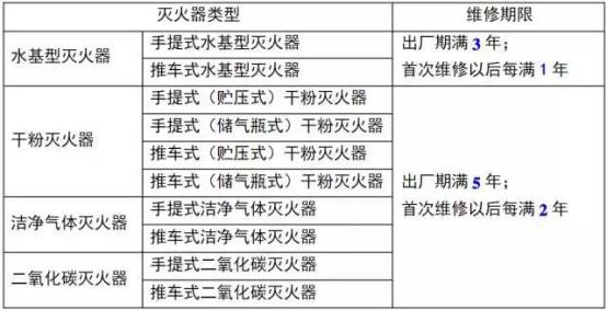 3.2 滅火器的維修期限應符合下表的規(guī)定。