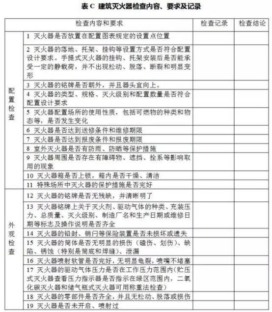 2.1 滅火器的配置、外觀等應按附錄C的要求每月進行一次檢查。
