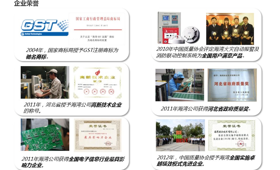 2012年10月,海灣榮獲2012年全國(guó)消防行業(yè)十大知名報(bào)警企業(yè)及全國(guó)實(shí)施卓越績(jī)效模式先進(jìn)企業(yè)稱號(hào)